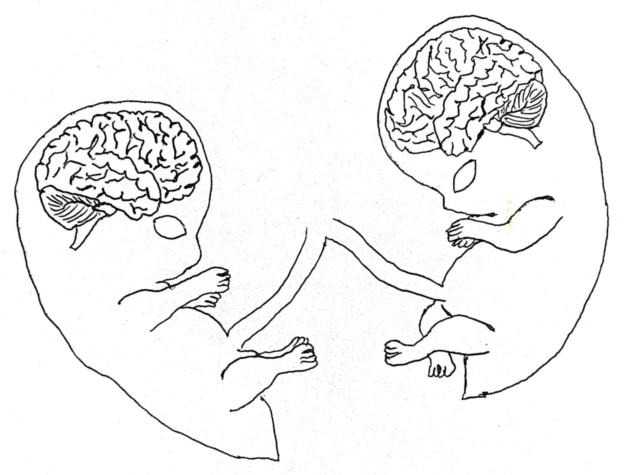 Den første relation fosteret har er som regel med moderen. Dette gør sig dog ikke gældende for tvillinger. Tvillinger er hinandens første relation - og endnu mere hvis de er enæggede - så er de skabt af det samme, de er "halve" hver. Der vil derfor være flere stimuli for nervesystemet at forholde sig til end blot dem, der kommer fra moderen. Disse stimuli er med til at skabe og udvikle vores nervesystem - og i sidste ende os som mennesker, med personlighed og handlemønstre. Disse er ikke altid hensigtsmæssige for alenefødte tvillinger.